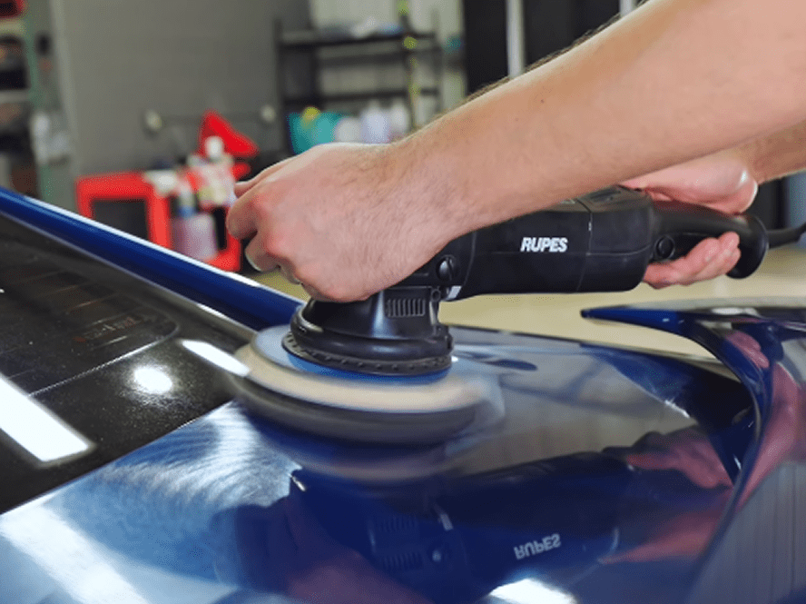 Light polishing removes swirls and imperfections before film installation.
